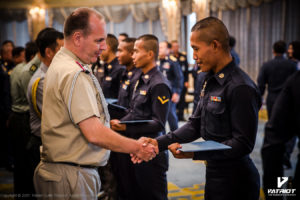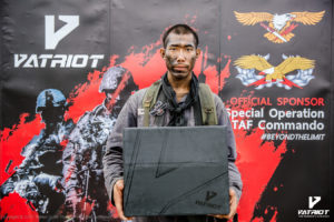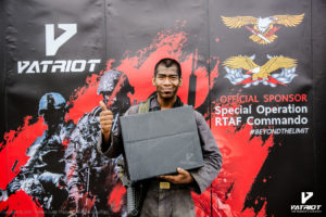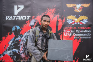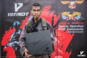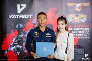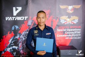 บริษัท Patriot Outfit (Thailand) เข้าร่วมสนับสนุนหลักสูตร Special Operations Course, RTAF Commando/PJ/CCT รุ่นที่ 12 โดยได้มอบรองเท้าคอมแบทรุ่น Warrior 1X ให้กับครูฝึก และผู้ที่สำเร็จหลักสูตรทุกคนที่ได้ประดับเครื่องการปฏิบัติการพิษ ซึ่งทางบริษัทได้เล็งเห็นถึงความสำคัญในการฝึกฝน เพื่อก้าวข้ามขีดจำกัดของตนเอง สอดคล้องกับสโลแกนของรองเท้าคอมแบทรุ่น Warrior 1X “Beyond The Limit” ซึ่งได้ผ่านการคิดค้นและพัฒนาจนก้าวข้ามขีดจำกัดเดิมๆของรองเท้าคอมแบท